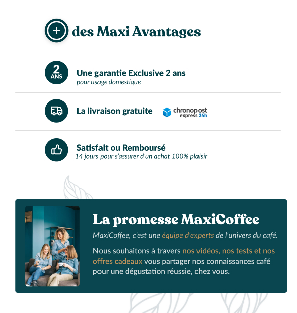 | Boissons réalisables | Café, Doppio, Expresso, Mousse de lait manuel |