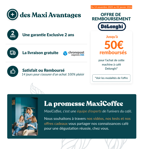 Retrouvez toute notre sélection de machines expresso DeLonghi sur MaxiCoffee.
