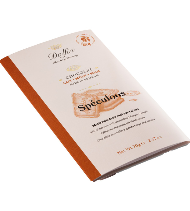 Découvrez la tablette de chocolat au lait et au spéculoos de Dolfin