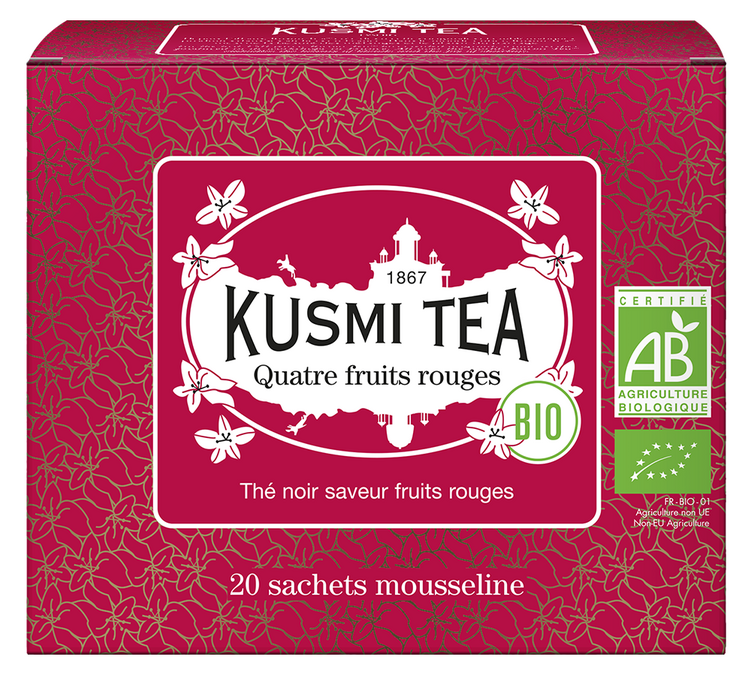 Votre thé noir aux quatre fruits rouges bio de Kusmi Tea en sachets mousselines